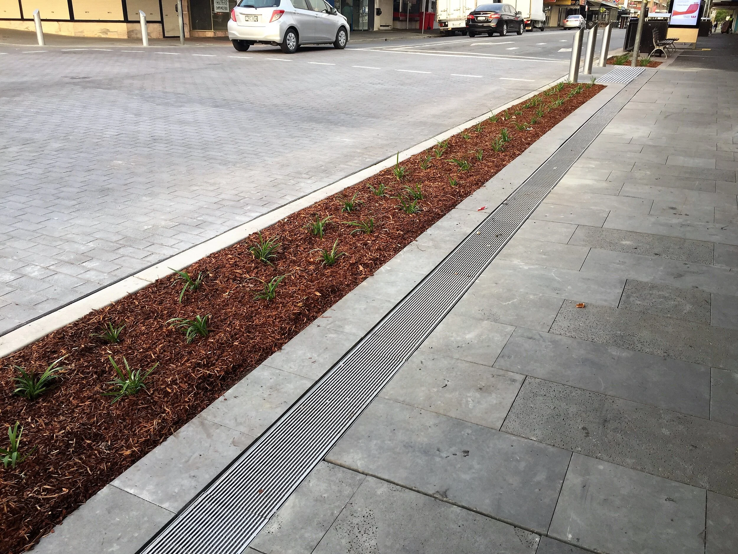 This high-profile project involved the demolition and disposal of the existing footpath pavement, kerb & gutter and roadway. 650Lm of new concrete kerb and gutter was constructed, along with 2,500m² of proposed paved footpaths and associated kerb ramps. Existing trafficable thresholds were also reconstructed, with new street furniture and landscaping works installed to complete the streetscape upgrade.